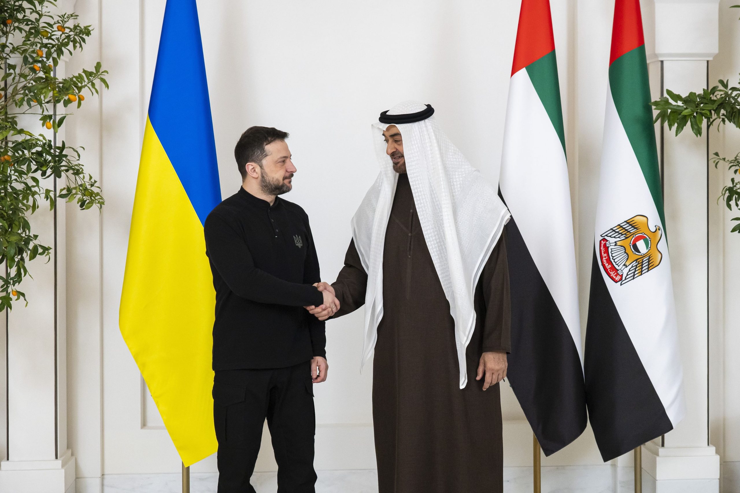 ورحب سموه – خلال اللقاء الذي جرى في قصر الشاطئ في أبوظبي – بفخامة الرئيس الأوكراني والوفد المرافق في دولة الإمارات معرباً عن تطلعه إلى أن تسهم الزيارة في دفع مسار علاقات البلدين إلى الأمام على مختلف المستويات متمنياً لبلده وشعبه الاستقرار والازدهار.