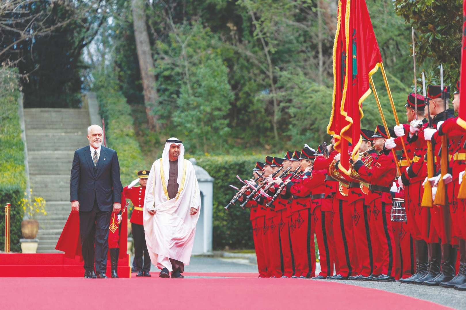 وكان صاحب السمو رئيس الدولة قد وصل إلى القصر الرئاسي في العاصمة تيرانا في وقت سابق حيث عزف السلام الوطني للبلدين واستعرض ثلة من حرس الشرف اصطفت تحية لسموه.