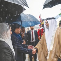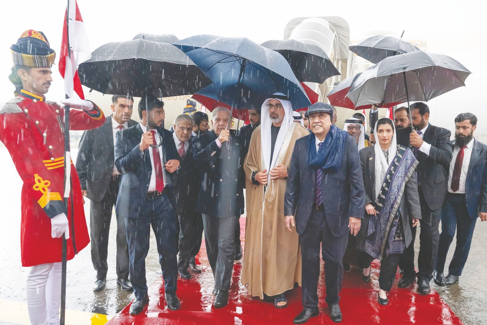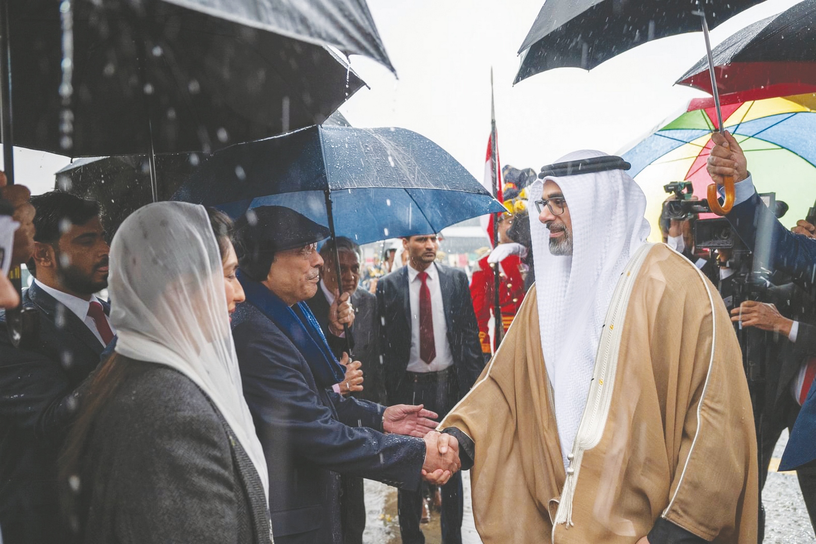 وكان في مقدمة مستقبلي سموه لدى وصوله قاعدة نور خان الجوية في إسلام آباد، فخامة آصف علي زرداري رئيس جمهورية باكستان الإسلامية، ودولة محمد شهباز شريف رئيس وزراء جمهورية باكستان الإسلامية، وعدد من كبار المسؤولين.