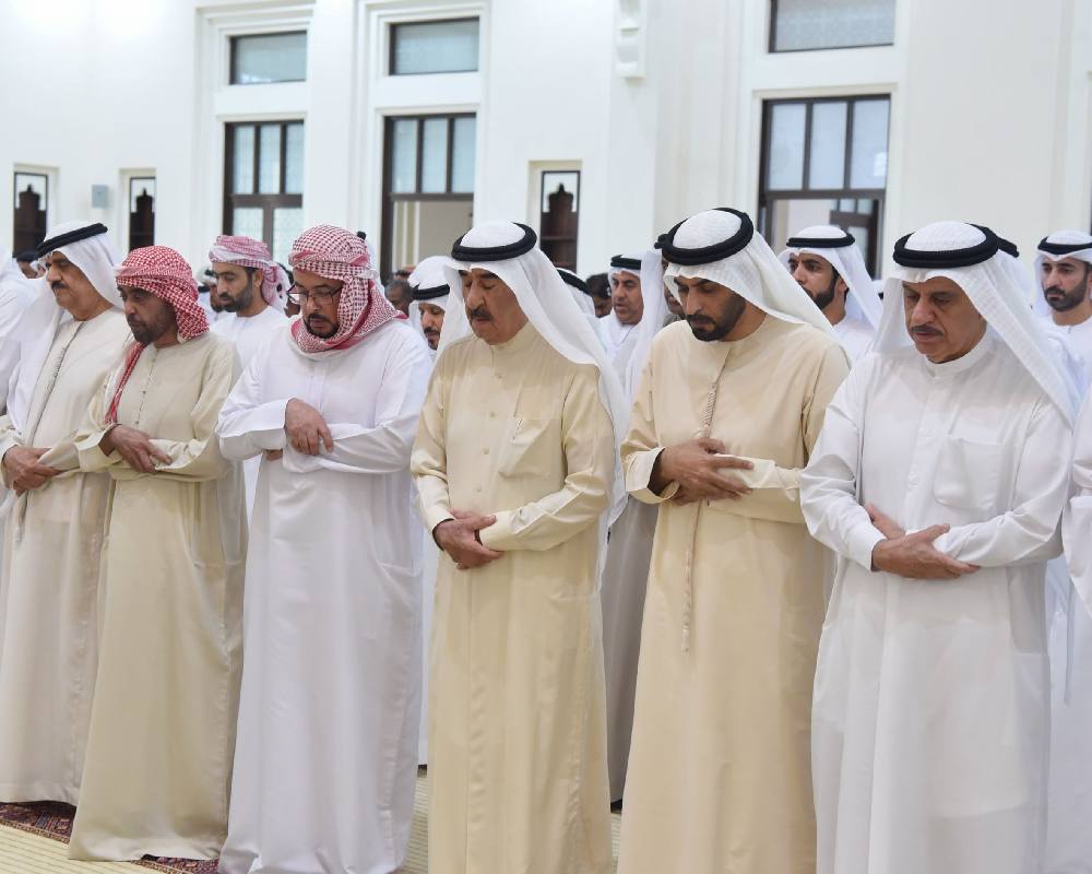 وأدى الصلاة إلى جانب سموه، معالي الشيخ حميد بن أحمد المعلا، والشيخ خالد بن راشد المعلا رئيس الديوان الأميري، والشيخ مكتوم بن راشد المعلا، والشيخ محمد بن راشد المعلا، والشيخ ماجد بن سعود بن راشد المعلا رئيس دائرة السياحة والآثار بأم القيوين، والشيخ أحمد بن ناصر بن أحمد المعلا المستشار الخاص لصاحب السمو حاكم أم القيوين .