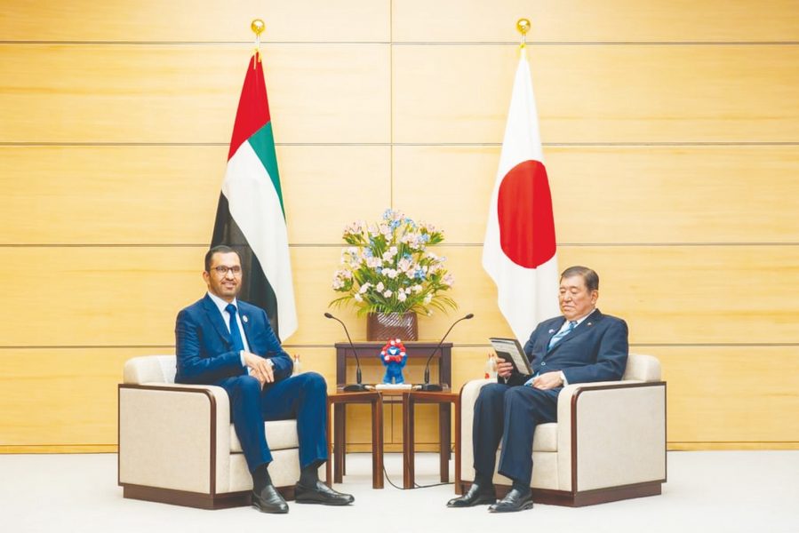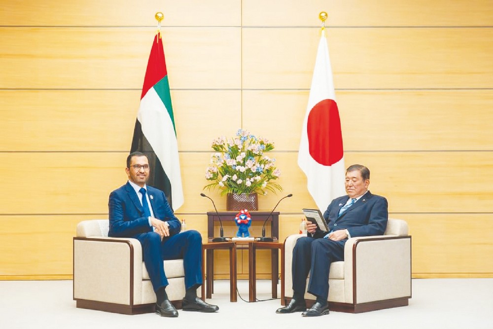سلم الرسالة إلى دولة رئيس الوزراء الياباني، معالي الدكتور سلطان بن أحمد الجابر وزير الصناعة والتكنولوجيا المتقدمة، مبعوث دولة الإمارات الخاص إلى اليابان خلال استقباله أمس في مقر رئاسة الوزراء في طوكيو، وذلك بحضور معالي نورة بنت محمد الكعبي وزيرة دولة، وسعادة شهاب الفهيم سفير الدولة لدى اليابان.