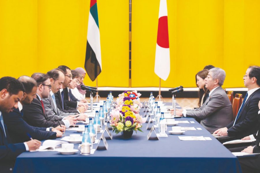 كما التقى معالي الدكتور سلطان الجابر خلال الزيارة معالي تاكيشي إيوايا، وزير الخارجية الياباني، وأعرب معاليه عن تقديره لمستوى العلاقات المتميزة التي تجمع دولة الإمارات باليابان، مؤكداً أنها تشهد تطوراً مستمراً في إطار الشراكة الاستراتيجية الشاملة.