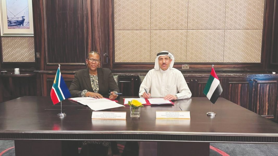وقعت دولة الإمارات، متمثلة بالهيئة العامة للطيران المدني، محضر مناقشات أولي “سجل مناقشات بالأحرف الأولى” مع جمهورية جنوب أفريقيا.