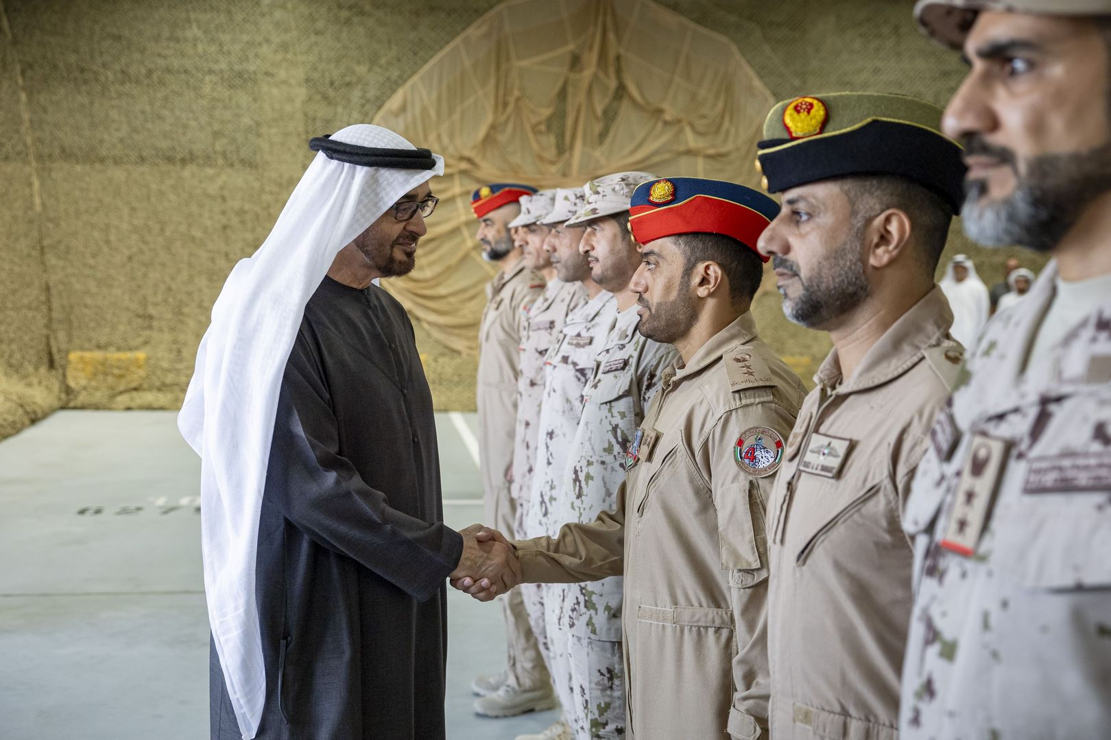 وأعرب صاحب السمو رئيس الدولة، خلال الزيارة، عن تقديره للدور العملياتي الذي يؤديه منتسبو اللواء، مثمنًا جهودهم المخلصة التي تجسد روح الانتماء والولاء للوطن، مؤكداً أن تطوير القوات المسلحة، وتحديث قدراتها القتالية، وتعزيز جاهزيتها العملياتية، يمثل أولوية إستراتيجية للدفاع عن الدولة والمحافظة على أمنها واستقرارها.