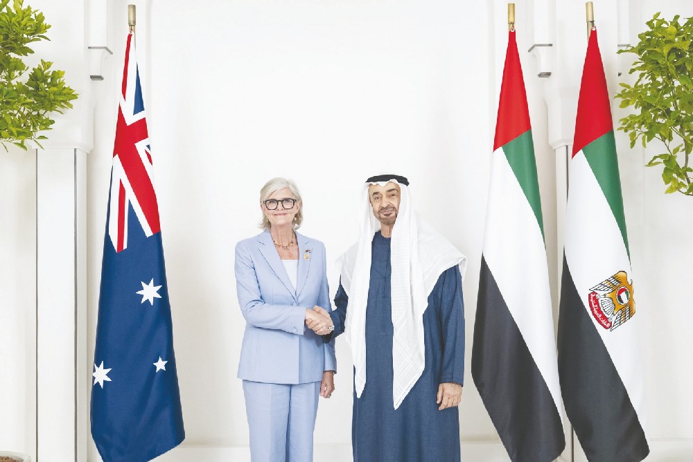 بحث صاحب السمو الشيخ محمد بن زايد آل نهيان رئيس الدولة “حفظه الله” وفخامة سام موستين الحاكمة العامة لكومنولث أستراليا، التي تقوم بزيارة رسمية إلى الدولة.. مختلف جوانب وفرص العلاقات بين دولة الإمارات وأستراليا وسبل تنميتها وتوسيع آفاقها خاصة في المجالات التنموية وذلك في ظل اتفاقية الشراكة الاقتصادية الشاملة بين البلدين.