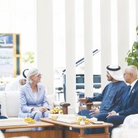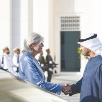 ورحب صاحب السمو الشيخ محمد بن زايد آل نهيان – خلال اللقاء الذي جرى في قصر الشاطئ في أبوظبي – بفخامة سام موستين والوفد المرافق في دولة الإمارات..متمنياً لأستراليا وشعبها مزيداً من التقدم والنماء.