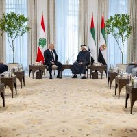 جاء ذلك خلال استقبال سموه ـ في قصر الشاطئ بأبوظبي ــ الرئيس اللبناني الذي يقوم بزيارة رسمية إلى دولة الإمارات حيث رحب سموه بالرئيس الضيف، متمنياً له التوفيق في قيادة لبنان الشقيق إلى كل ما يحقق الاستقرار والتنمية والازدهار لشعبه وأن يعود لبنان إلى موقعه المهم في محيطه العربي والإقليمي والعالمي.