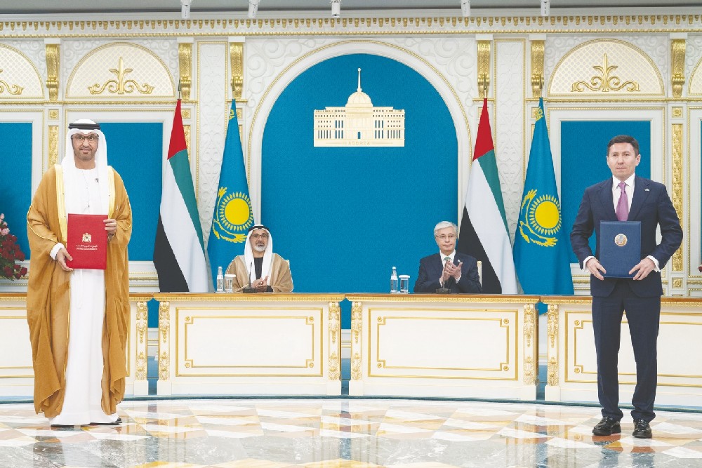 وشهد سمو ولي عهد أبوظبي وفخامة الرئيس الكازاخستاني، على هامش اللقاء، تبادل عدد من الاتفاقيات ومذكرات التفاهم بين مسؤولين من كلا الجانبين، في مجالات النقل والمواصلات، والرعاية الصحية، والطاقة المتجددة، والحلول الرقمية والتكنولوجية، والاستثمار المالي والمصرفي، وغيرها من القطاعات الرئيسية ذات الأولوية الوطنية في كلا البلدين.