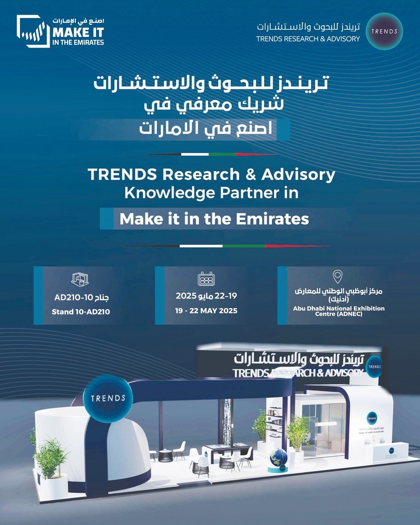 يشارك مركز تريندز للبحوث والاستشارات، بصفته شريكاً معرفياً، في النسخة الرابعة من منتدى “اصنع في الإمارات” والمعرض المصاحب، الذي تستضيفه وزارة الصناعة والتكنولوجيا المتقدمة، وتنظمه شركة كابيتال للفعاليات التابعة لمجموعة أدنيك.