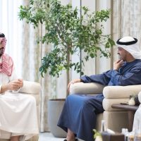 ونقل صاحب السمو الملكي الأمير خالد بن سلمان إلى سموه ــ خلال اللقاء الذي جرى في قصر الشاطئ بأبوظبي ــ تحيات خادم الحرمين الشريفين الملك سلمان بن عبد العزيز آل سعود عاهل المملكة العربية السعودية وصاحب السمو الملكي الأمير محمد بن سلمان بن عبد العزيز آل سعود ولي العهد رئيس مجلس وزراء المملكة.. وتمنياتهما لدولة الإمارات مزيداً من التقدم والازدهار.. فيما حمله سموه تحياته إلى خادم الحرمين الشريفين وولي عهده وتمنياته للمملكة دوام التطور والرفعة والرخاء في ظل قيادة الملك سلمان بن عبد العزيز آل سعود الحكيمة.
