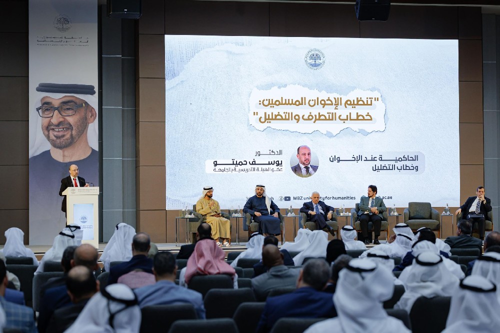 نظمت جامعة محمد بن زايد للعلوم الإنسانية، اليوم بمقرها في أبوظبي ندوة بعنوان “تنظيم الإخوان المسلمين .. خطاب التطرف والتضليل”، ضمن ندواتها الفكرية الموجهة للمجتمع بهدف تعزيز الرؤى التي تتبناها دولة الإمارات، للحد من الأفكار الهدامة التي تتبناها التيارات المتطرفة، وتعزيز قيم التعايش والتسامح ونبذ الغلو والتطرف.