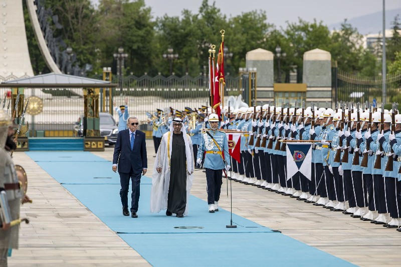 وجرت لسموه مراسم استقبال رسمية لدى وصول الموكب ترافقه مجموعة من الخيالة حيث توجه سموه وفخامة الرئيس التركي إلى منصة الشرف وعزف السلام الوطني لكل من دولة الإمارات وتركيا..واصطفت ثلة من حرس الشرف تحية وترحيباً بزيارة سموه.