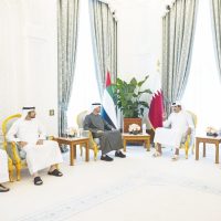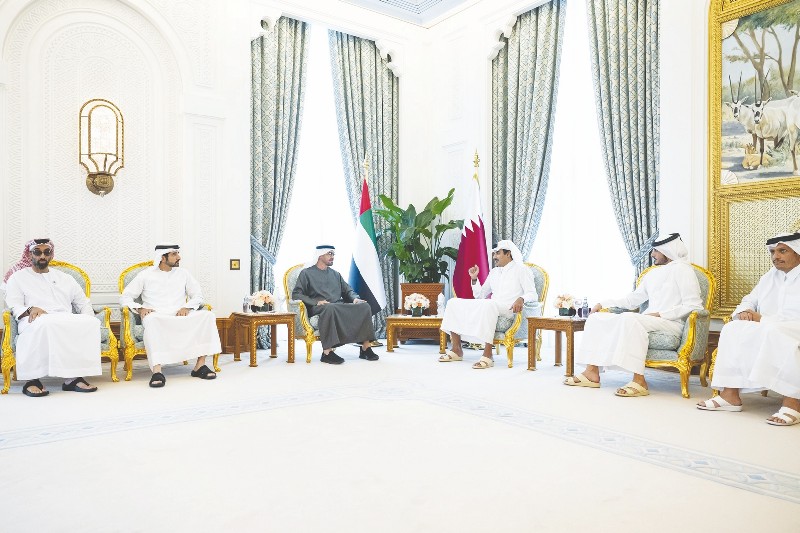 جاء ذلك خلال لقاء صاحب السمو رئيس الدولة أخاه صاحب السمو الشيخ تميم بن حمد آل ثاني في الديوان الأميري في الدوحة في زيارة أخوية إلى قطر.