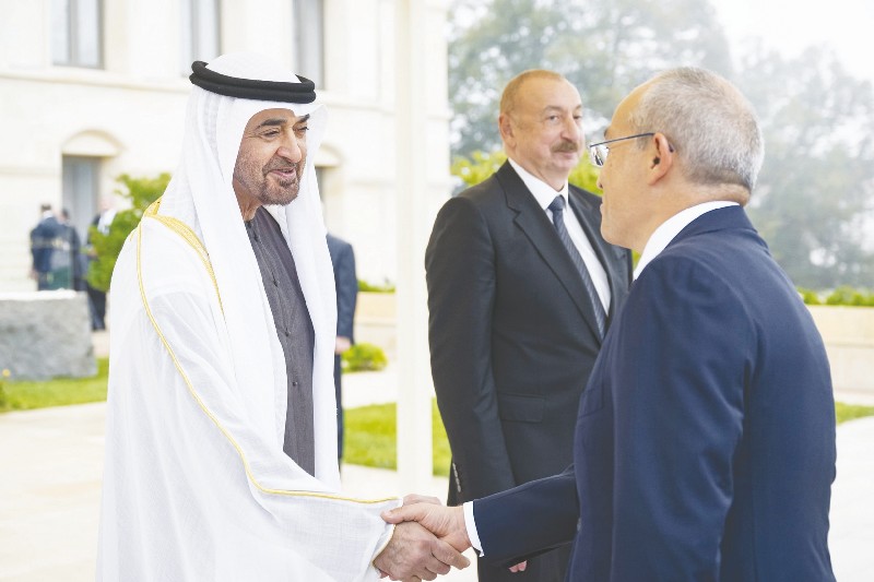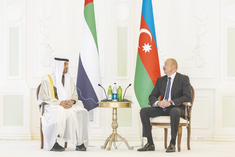جاء ذلك خلال لقاء صاحب السمو رئيس الدولة أمس ـ في كاراباخ بأذربيجان ـ فخامة الرئيس إلهام علييف الذي رحب بسموه، مؤكداً أن زيارته تعطي دفعاً قوياً لمسارات التعاون على مختلف المستويات بما يصب في مصلحة البلدين ويعود بالخير على شعبيهما.