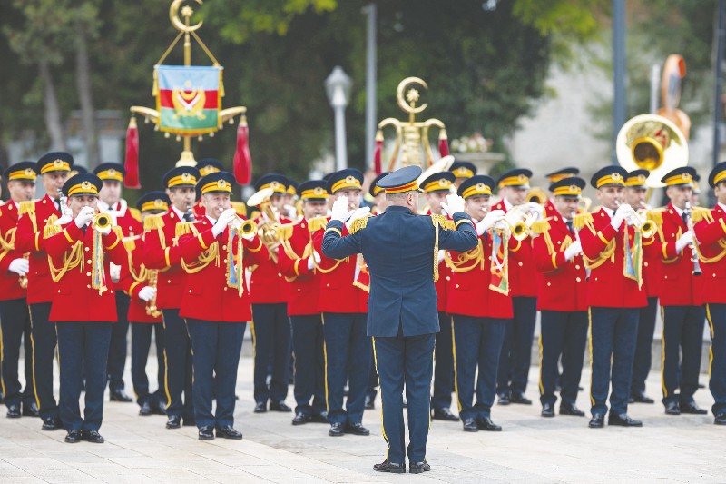 وجرت لسموه في الساحة الخارجية مراسم استقبال رسمية حيث عزف السلام الوطني لكل من دولة الإمارات وأذربيجان، واستعرض سموه ثلة من حرس الشرف اصطفت تحية لسموه.
