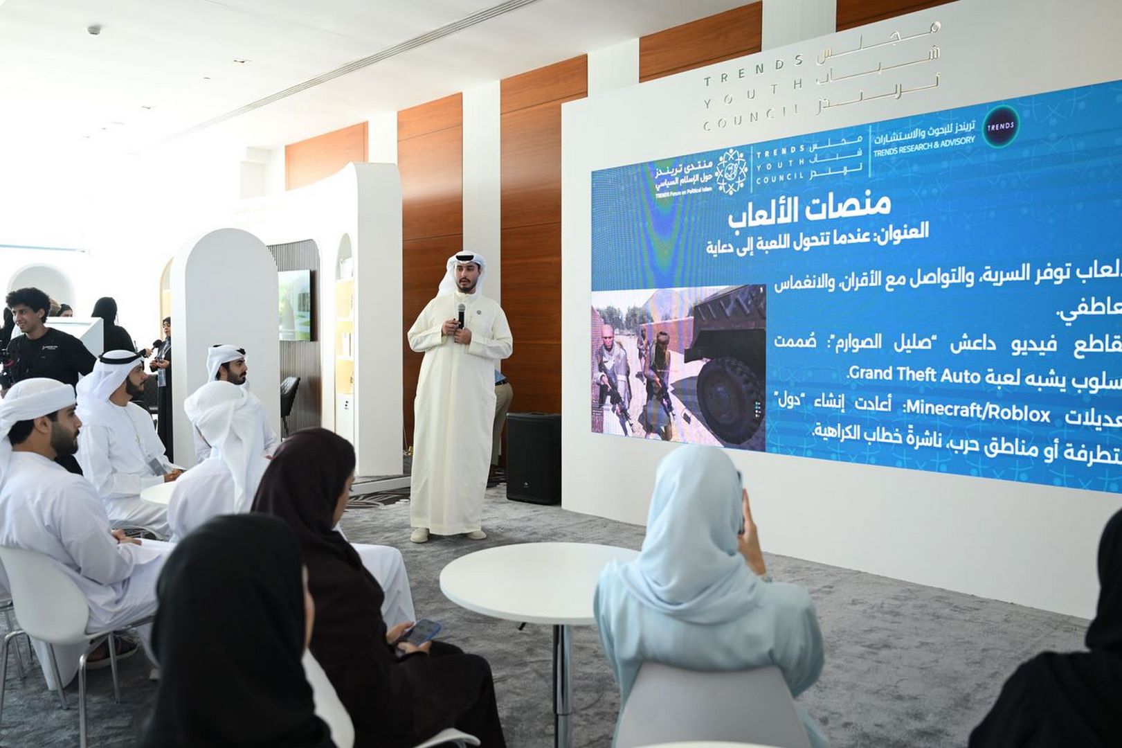 جاء ذلك في إطار ثلاث ورش عمل نوعية نظمها المجلس على هامش أعمال منتدى تريندز السنوي الخامس حول الإسلام السياسي، شارك فيها طلاب جامعيون، وناقشت أحدث التحديات المرتبطة بالفضاء الرقمي واستغلاله في الترويج للتطرف.