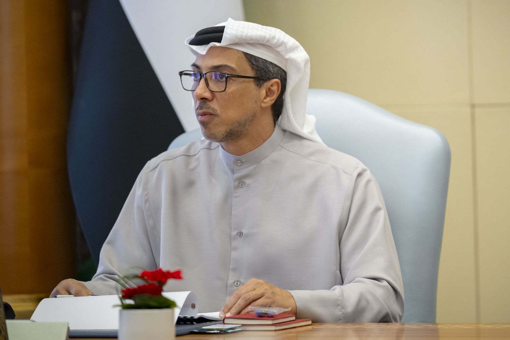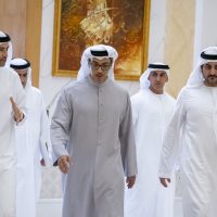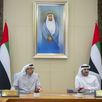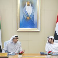 كما حضر الاجتماع ، معالي محمد بن هادي الحسيني، وزير دولة للشؤون المالية، ومعالي خالد محمد سالم بالعمى التميمي، محافظ مصرف الإمارات العربية المتحدة المركزي، إضافة إلى ممثلي ديوان الرئاسة ووزارة المالية.