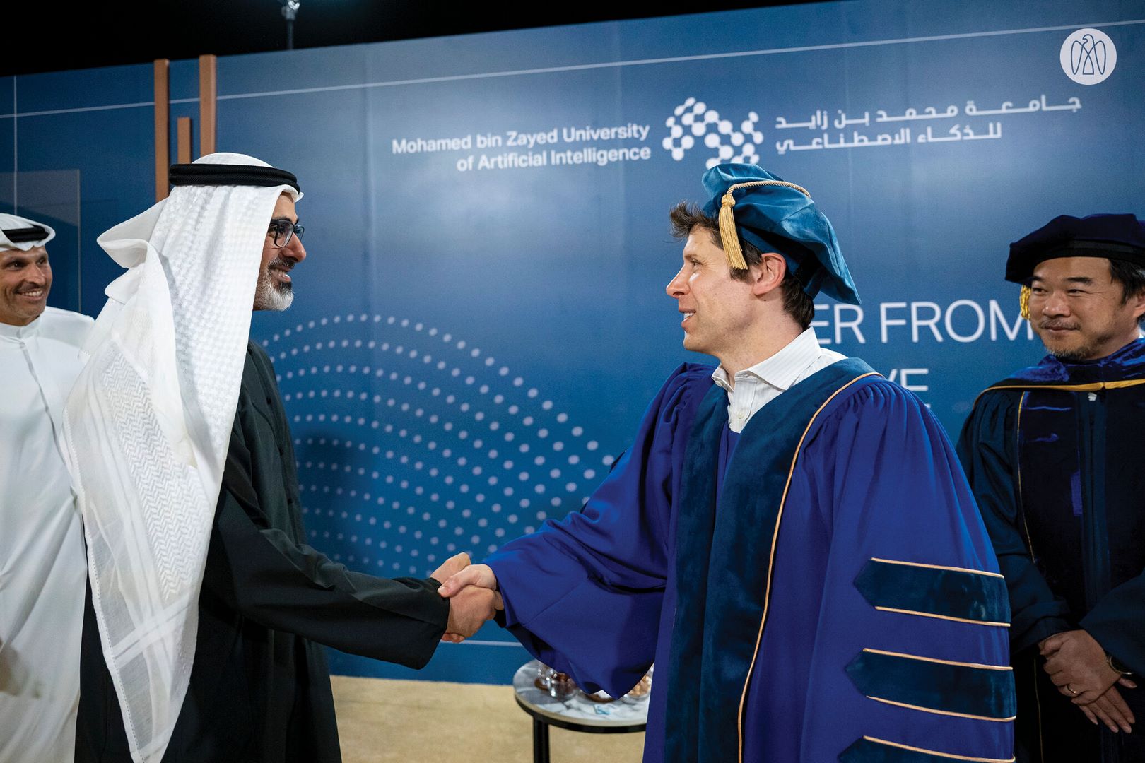 شهد سموّ الشيخ خالد بن محمد بن زايد آل نهيان، ولي عهد أبوظبي رئيس المجلس التنفيذي لإمارة أبوظبي، مراسم حفل منح الدكتوراة الفخرية الأولى في جامعة محمد بن زايد للذكاء الاصطناعي إلى سام ألتمان، الرئيس التنفيذي لشركة “أوبن ايه آي”، تقديراً لقيادته التحويلية في مجال الذكاء الاصطناعي.