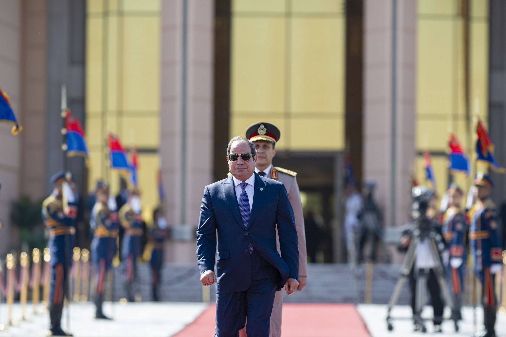 ورحب فخامة الرئيس المصري – خلال استراحة قصيرة في قاعة كبار الزوار في المطار – بصاحب السمو رئيس الدولة، وتبادلا الأحاديث الودية التي تعبر عن عمق العلاقات الأخوية التي تجمع البلدين الشقيقين والحرص المتبادل على مواصلة تعزيزها.
