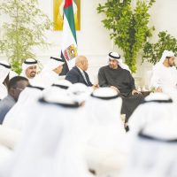 حضر اللقاء عدد من سمو الشيوخ وكبار المسؤولين في الدولة.وام