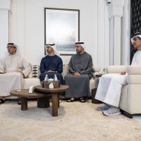 حضر اللقاء..سمو الشيخ منصور بن زايد آل نهيان نائب رئيس الدولة نائب رئيس مجلس الوزراء رئيس ديوان الرئاسة وسمو الشيخ حمدان بن محمد بن زايد آل نهيان نائب رئيس ديوان الرئاسة للشؤون الخاصة ومعالي الشيخ محمد بن حمد بن طحنون آل نهيان مستشار رئيس الدولة ومعالي علي بن حماد الشامسي الأمين العام للمجلس الأعلى للأمن الوطني ومعالي الدكتور أحمد مبارك المزروعي رئيس مكتب رئيس الدولة للشؤون الإستراتيجية رئيس مكتب أبوظبي التنفيذي وعدد من كبار المسؤولين.وام