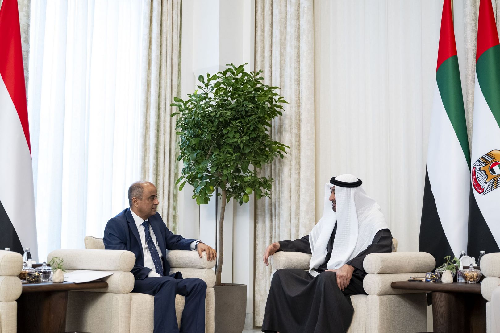جاء ذلك خلال استقبال صاحب السمو رئيس الدولة، رئيس الوزراء اليمني أمس في قصر الشاطئ في أبوظبي والذي نقل إلى سموه تحيات فخامة الدكتور رشاد محمد العليمي رئيس مجلس القيادة الرئاسي في اليمن وتمنياته لدولة الإمارات مزيداً من التطور والازدهار، فيما حمله سموه تحياته إلى رئيس مجلس القيادة متمنياً لليمن وشعبه الشقيق الاستقرار والازدهار.