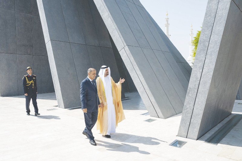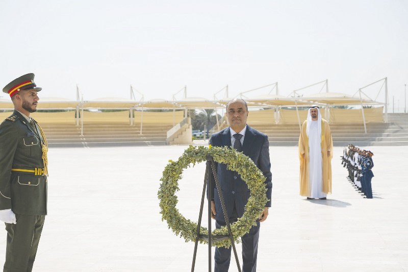 واستعرض معالي رئيس الوزراء اليمني، يرافقه سموّ الشيخ ذياب بن محمد بن زايد آل نهيان، حرس الشرف الذي اصطفَّ لتحيته، ثمَّ وضع إكليلاً من الزهور أمام نصب الشهيد.