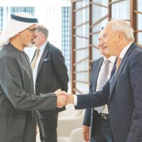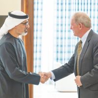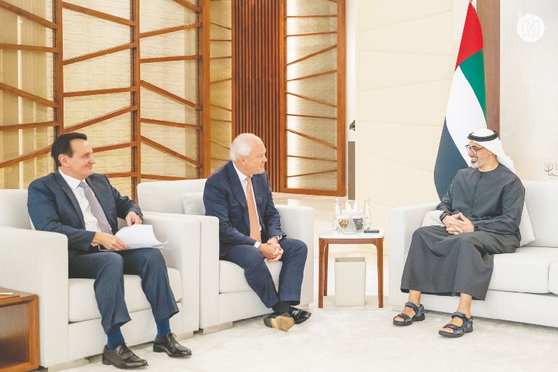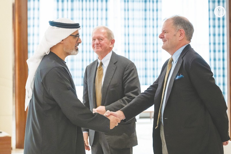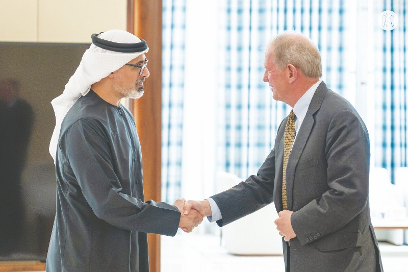 التقى سمو الشيخ خالد بن محمد بن زايد آل نهيان، ولي عهد أبوظبي رئيس المجلس التنفيذي لإمارة أبوظبي، ميشيل ديماري، رئيس مجلس إدارة شركة أسترازينيكا، المتخصصة في قطاع الصناعة الدوائية.