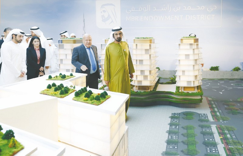 وقال سموه: أطلقنا اليوم “حي محمد بن راشد الوقفي” ليكون مشروعاً وقفياً رائداً يجمع بين الرعاية الصحية والتعليم والسكن.. نريده نموذجاً حضرياً يجسد رسالتنا في الوقف كأداة تضاعف قيمة العطاء.. وتترك أثراً دائماً في حياة الإنسان.