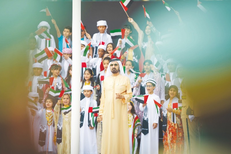 أكد صاحب السمو الشيخ محمد بن راشد آل مكتوم نائب رئيس الدولة رئيس مجلس الوزراء حاكم دبي “رعاه الله”، أن عَلَم دولة الإمارات سيظل على الدوام رمزاً للخير والرفعة والإباء، وعنواناً لنهضة تنموية شاملة وملحمةَ تَقدُّمٍ وازدهار يواصل شعب الإمارات إضافة فصول جديدة لها كل يوم بقيادة صاحب السمو الشيخ محمد بن زايد آل نهيان رئيس الدولة “حفظه الله”، وبدعم إخوانه أصحاب السموّ الشيوخ أعضاء المجلس الأعلى حُكَّام الإمارات، استكمالاً لمسيرة النماء المباركة التي وضع الآباء المؤسسون في مستهلها اللبنات الأولى لصرح الاتحاد.