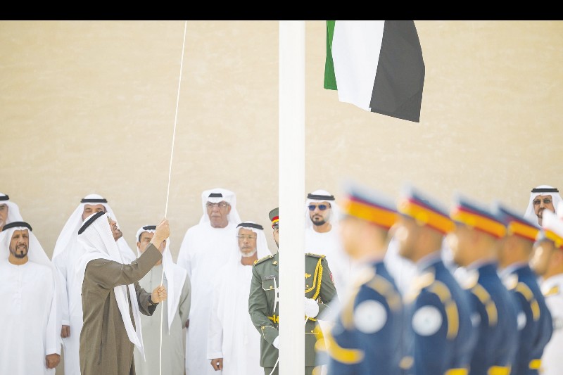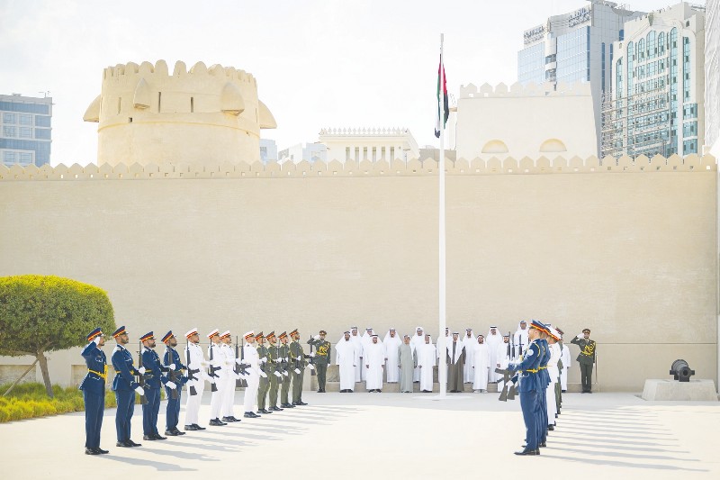 ورافق مراسم رفع العلم، عزف السلام الوطني لدولة الإمارات، بمشاركة مجموعة من أبناء الوطن من الضباط المتقاعدين، تعبيراً عن تقدير الدولة لأبنائها الذين أسهموا في مختلف مراحل تطورها ونهضتها، ووفاءً وعرفاناً لمسيرة عطائهم وما قدموه على مدى عقود في سبيل رفعةً الوطن وصون أمنه والحفاظ على مكتسباته ليبقى عزيزاً شامخاً.