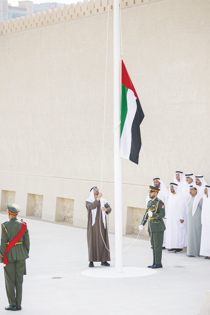 رفع صاحب السمو الشيخ محمد بن زايد آل نهيان، رئيس الدولة “حفظه الله”، علم الدولة على سارية قصر الحصن في أبوظبي، احتفاء بمناسبة “يوم العلم”، واعتزازاً بما يمثله من معاني الولاء والانتماء والفخر بالوحدة تحت رايته الشامخة.