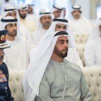 ورحب سموه بضيوف الدولة ـ خلال اللقاء الذي جرى في قصر البحر في أبوظبي – معرباً عن تمنياته لهم التوفيق في اجتماعاتهم للخروج بنتائج تسهم في تعزيز جهود المجتمع الدولي نحو مجتمعات أكثر أمناً واستقراراً وازدهاراً.