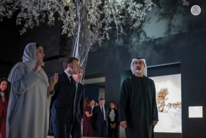 زار فخامة إيمانويل ماكرون، رئيس الجمهورية الفرنسية، متحف زايد الوطني في المنطقة الثقافية بجزيرة السعديات، يرافقه سمو الشيخ خالد بن محمد بن زايد آل نهيان، ولي عهد أبوظبي رئيس المجلس التنفيذي لإمارة أبوظبي.