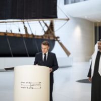 ورحب سموه ــ خلال اللقاء الذي جرى في متحف زايد الوطني في أبوظبي ــ بفخامة الرئيس الفرنسي..وتبادل معه التهاني بمناسبة قرب حلول العام الجديد متمنيين للبلدين وشعبيهما دوام التقدم والازدهار.