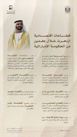 وجاءت هذه الإنجازات والتحولات التاريخية في اقتصاد الإمارات خلال عقدين من الزمن، نتيجة فكر استثنائي ورؤية استباقية قاد من خلالها صاحب السمو الشيخ محمد بن راشد آل مكتوم، حكومة دولة الإمارات لترسيخ أسس قوية رسمت مسارات المستقبل مُبكراً عبر محاور متعددة تشمل تعزيز البنية التحتية الأفضل عالمياً والاستثمارات الضخمة في الموانئ والمطارات والمناطق الحرة، والتبني المبكر لاستراتيجيات التحول الرقمي الشامل وخصوصا في قطاع التكنولوجيا المالية والاستثمار في قطاعات اقتصادية جديدة تفتح آفاقا وفرصاً أوسع مثل قطاع الفضاء وقطاعات العلوم المتقدمة والتكنولوجيا والتصنيع والذكاء الاصطناعي، إضافة إلى الاقتصاد الأخضر والطاقة النظيفة.