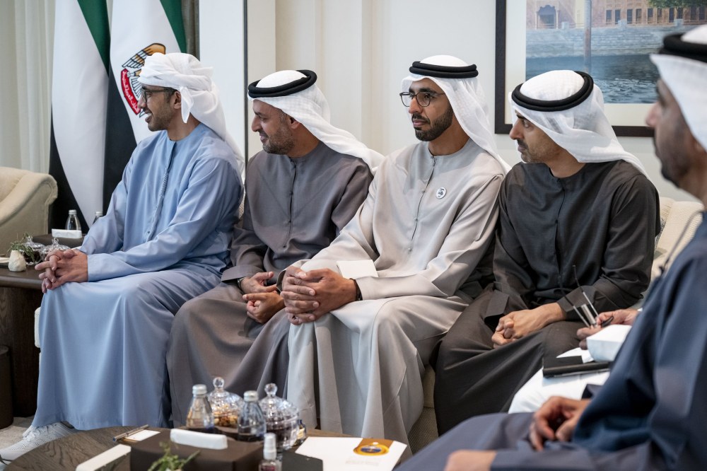 حضر اللقاء..سمو الشيخ عبد الله بن زايد آل نهيان نائب رئيس مجلس الوزراء وزير الخارجية وسمو الشيخ حمدان بن محمد بن زايد آل نهيان نائب رئيس ديوان الرئاسة للشؤون الخاصة ومعالي الشيخ محمد بن حمد بن طحنون آل نهيان مستشار صاحب السمو رئيس الدولة ومعالي الشيخ شخبوط بن نهيان آل نهيان وزير دولة وعدد من كبار المسؤولين