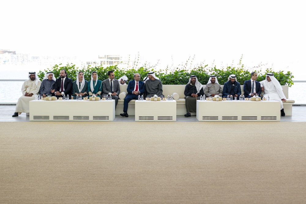حضر مجلس قصر البحر..سمو الشيخ خالد بن محمد بن زايد آل نهيان ولي عهد أبوظبي وسمو الشيخ سيف بن محمد آل نهيان وسمو الشيخ سرور بن محمد آل نهيان وسمو الشيخ نهيان بن زايد آل نهيان رئيس مجلس أمناء مؤسسة زايد بن سلطان آل نهيان للأعمال الخيرية والإنسانية والفريق سمو الشيخ سيف بن زايد آل نهيان نائب رئيس مجلس الوزراء وزير الداخلية وسمو الشيخ حامد بن زايد آل نهيان وسمو الشيخ ذياب بن محمد بن زايد آل نهيان نائب رئيس ديوان الرئاسة للشؤون التنموية وأسر الشهداء وسمو الشيخ حمدان بن محمد بن زايد آل نهيان نائب رئيس ديوان الرئاسة للشؤون الخاصة وسمو الشيخ زايد بن محمد بن زايد آل نهيان ومعالي الشيخ نهيان بن مبارك آل نهيان وزير التسامح والتعايش ومعالي الشيخ محمد بن حمد بن طحنون آل نهيان مستشار صاحب السمو رئيس الدولة وعدد من الوزراء وكبار المسؤولين والضيوف وعدد من أعضاء الوفد المرافق للرئيس الضيف.