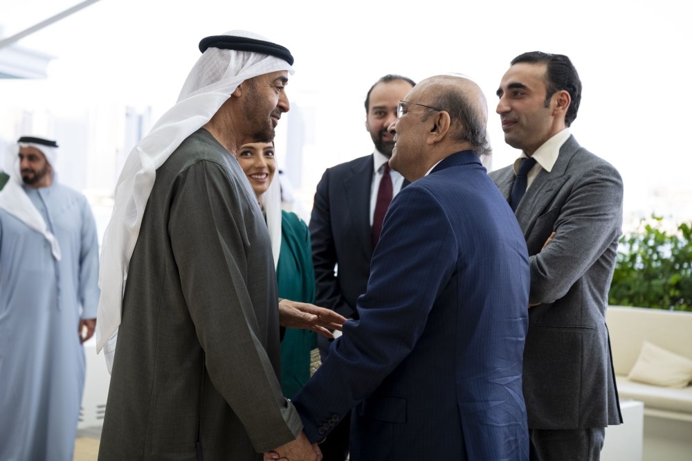 بحث صاحب السمو الشيخ محمد بن زايد آل نهيان رئيس الدولة “حفظه الله” وفخامة آصف علي زرداري رئيس جمهورية باكستان الإسلامية اليوم مختلف جوانب العلاقات الثنائية وسبل تعزيزها خاصة في المجالات الاقتصادية والتجارية والاستثمارية بما يخدم التنمية المشتركة للبلدين ويعود بالخير على شعبيهما.