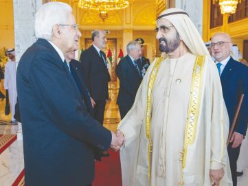ورحّب صاحب السمو الشيخ محمد بن راشد آل مكتوم بالرئيس الضيف، مؤكداً عمق العلاقات التاريخية والاستراتيجية التي تجمع دولة الإمارات وجمهورية إيطاليا، وما تشهده من تطور مستمر في مختلف المجالات، في ضوء رؤية قيادتي البلدين القائمة على تعزيز الشراكة البناءة، وتبادل الخبرات بما يخدم تطلعات الشعبين نحو مزيد من التقدم والازدهار.
