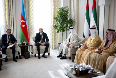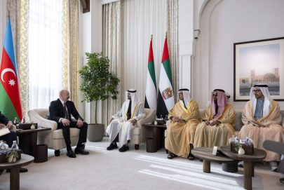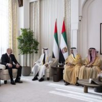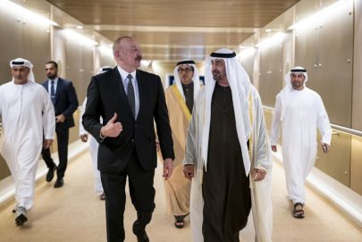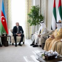 بحث صاحب السمو الشيخ محمد بن زايد آل نهيان رئيس الدولة “حفظه الله” وفخامة إلهام علييف رئيس جمهورية أذربيجان علاقات البلدين والعمل المشترك بينهما لتوسيع آفاقها خاصة في المجالات الاقتصادية والاستثمارية والتنموية والطاقة المتجددة وغيرها من الجوانب التي تخدم المصالح المشتركة وتسهم في تحقيق التنمية المتبادلة .. وذلك في إطار اتفاقية الشراكة الاقتصادية الشاملة والشراكة الإستراتيجية الشاملة بين البلدين.