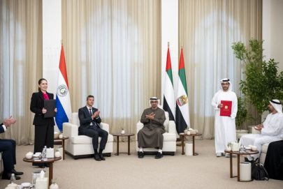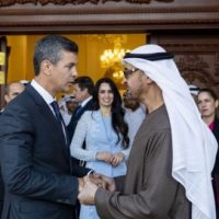 وبحث سموه ورئيس الباراغواي، خلال اللقاء الذي جرى في قصر البحر في أبوظبي، علاقات التعاون بين البلدين وما تشهده من تطور مستمر في مختلف القطاعات خاصة الاقتصادية والتجارية والتنموية وغيرها من المجالات ذات الأولوية التنموية، مؤكدين حرصهما على استثمار الفرص المتاحة بين البلدين لفتح آفاق جديدة للتعاون المشترك بما يدعم مصالحهما ويعود بالتقدم والازدهار على شعبيهما.