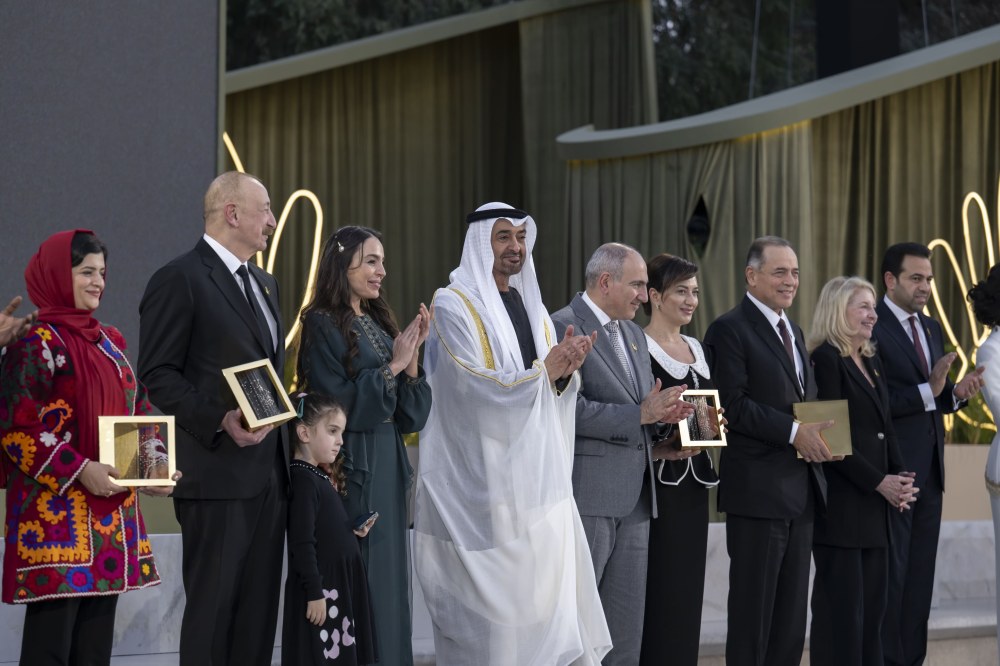وأعرب فخامة الرئيس إلهام علييف في كلمة له خلال الحفل عن اعتزازه بهذا التكريم الذي يحمل اسم المغفور له الشيخ زايد بن سلطان آل نهيان “طيب الله ثراه” الذي جعل دولة الإمارات واحدة من أكثر دول العالم ازدهارا ونجاحا..مشيراً إلى أن صاحب السمو الشيخ محمد بن زايد آل نهيان يواصل نهج الوالد المؤسس في التنمية والتحديث والتقدم..وقال إن الدولة أصبحت نموذجاً عالمياً يُحتذى في بناء الدول الحديثة وترسيخ مجتمعات تنعم بالسلام والاستقرار وتحافظ في الوقت ذاته على ارتباطها العميق بجذورها التاريخية..مضيفاً أنها نجحت في تقديم تجربة فريدة تجمع بين الأصالة والانفتاح وتسهم بدور محوري في تعزيز الحوار الإنساني والقيم التي تقرب بين الحضارات وتصنع مستقبلاً أكثر ازدهار.