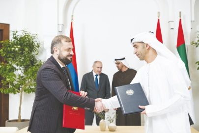 كما شهد صاحب السمو رئيس الدولة ومعالي رئيس وزراء أرمينيا توقيع اتفاقية تعاون في مجال تجارة الخدمات والاستثمار بين حكومتي دولة الإمارات وأرمينيا، وقعها معالي الدكتور ثاني بن أحمد الزيودي وزير التجارة الخارجية ومعالي جيفورغ بابويان وزير الاقتصاد في أرمينيا ..إضافةً إلى إعلان مذكرة تفاهم حول التعاون في مجال تبادل الخبرات الحكومية بين البلدين.وام