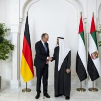 ورحب صاحب السمو رئيس الدولة، خلال اللقاء الذي جرى في قصر الشاطئ في أبوظبي، بالمستشار الألماني الذي يقوم بزيارة رسمية إلى الدولة، مؤكداً أن دولة الإمارات وألمانيا تجمعهما علاقات راسخة وشراكات فاعلة خاصة في مجالات الطاقة والتنمية والابتكار والتكنولوجيا المتقدمة وغيرها، وأشار إلى أن الدولة حريصة على تنمية هذه العلاقات والارتقاء بها إلى آفاق أوسع لما فيه الخير للبلدين وشعبيهما.
