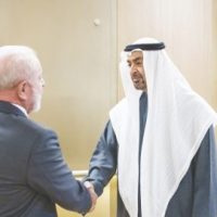 كما تطرق اللقاء إلى المفاوضات الجارية بين دولة الإمارات ومنظمة السوق المشتركة لأميركا الجنوبية “الميركسور” بشأن إقامة شراكة اقتصادية شاملة بينهما، والتي وصلت إلى مرحلتها النهائية، معربين عن تطلعهما إلى أن تسهم هذه الشراكة بعد إتمامها في فتح آفاق جديدة وتوفير فرص طموحة للتعاون الاقتصادي البناء بين دولة الإمارات والبرازيل.