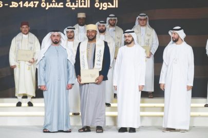 كما ثمّن الفائزون الدعم الكبير الذي توليه القيادة الرشيدة في دولة الإمارات للمبادرات القرآنية والعلمية والثقافية، مؤكدين أن هذه الجائزة تمثل منصة عالمية لنشر رسالة القرآن الكريم القائمة على الرحمة والتسامح والتعايش الإنساني.