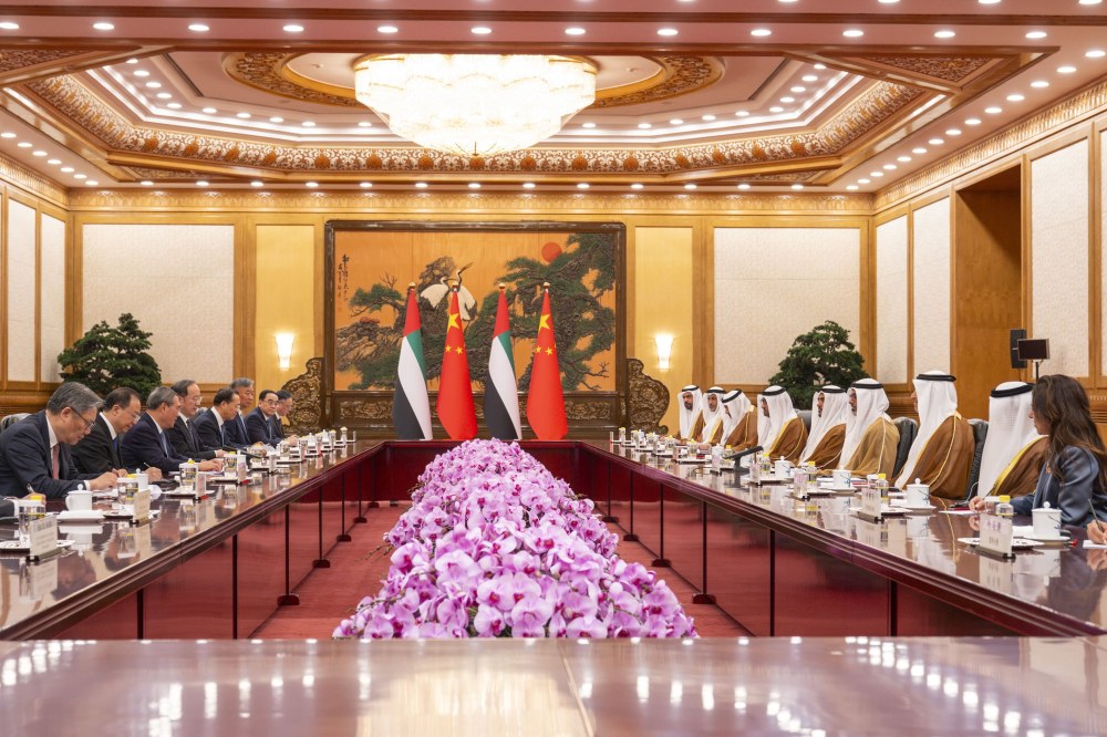 وأشار الجانبان، خلال اللقاء، الى أهمية انعقاد مؤتمر الترويج للأعمال بين دولة الإمارات العربية المتحدة وجمهورية الصين الشعبية، تزامناً مع هذه الزيارة، حيث يشارك فيها قادة الأعمال والمستثمرون من كلا البلدين لبحث فرص تعزيز التعاون في مجالات التجارة والاستثمار والبنية التحتية والتكنولوجيا والتنمية الصناعية، بما يواكب حجم التجارة البينية غير النفطية بين البلدين التي بلغت نحو 111 مليار دولار أمريكي في 2025.