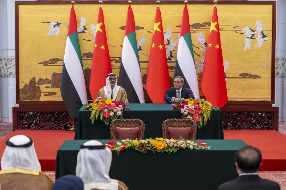 وشهد سمو الشيخ خالد بن محمد بن زايد آل نهيان ومعالي لي تشيانغ مراسم توقيع عدد من مذكرات التفاهم لتعزيز الشراكة الإماراتية-الصينية وتوسيع آفاق التعاون بين البلدين، في مختلف القطاعات ذات الاهتمام المشترك، ومن أبرزها قطاع الطاقة النظيفة، والاستثمار، والزراعة المستدامة، والاستدامة البيئية، والعلوم الصحية، ودعم تبادل الخبرات وتنفيذ البرامج البحثية المشتركة في قطاع التكنولوجيا المتقدمة.