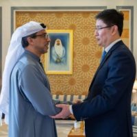 تسلم الرسالة سمو الشيخ منصور بن زايد آل نهيان، نائب رئيس الدولة نائب رئيس مجلس الوزراء رئيس ديوان الرئاسة، خلال استقباله، في قصر الوطن بأبوظبي، معالي يرنار لازار المبعوث الخاص ومستشار رئيس جمهورية كازاخستان للشؤون الدولية.